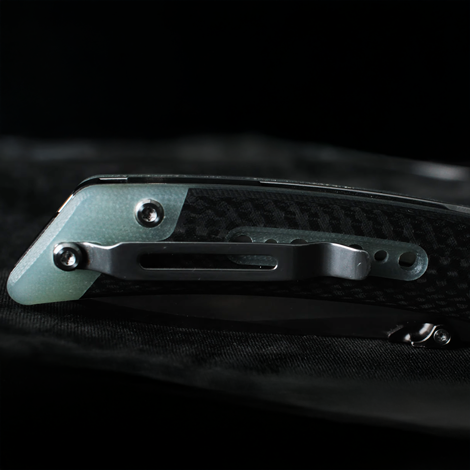 Crafted to be the ultimate tool for everyday use, our 7.4" folding pocket knife combines sleek design with durable functionality. With a 3.15" Sandvik 14C28N stainless steel blade, this knife boasts exceptional sharpness, strength, and corrosion resistance, making it perfect for daily cutting tasks and rugged adventures alike. The polished drop-point blade provides precision with a flat grind, adding a balance of durability and edge retention. Designed for comfort and control, the handle features a striking jade G10 material with a carbon fiber inlay, delivering a textured grip that’s both stylish and secure. At a closed length of 4.25", the knife offers a compact, portable design, with an anodized aluminum pivot assembly for smooth opening and a reliable liner lock for added safety. This is your reliable, go-anywhere companion with a sleek, deep-carry clip that keeps it close but out of sight until you need it..